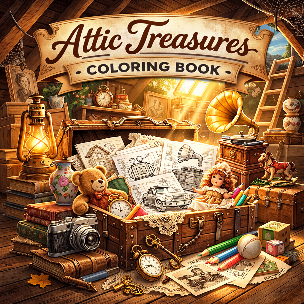 Perfect for lovers of nostalgia, vintage aesthetics, and storytelling through objects, Attic Treasures offers a warm and reflective coloring experience.